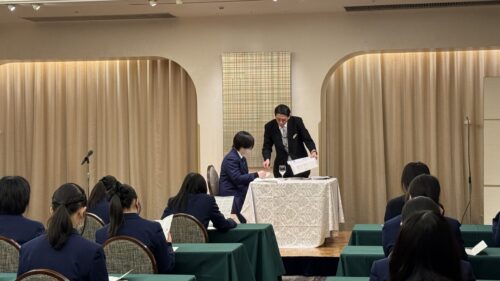 リーガロイヤルホテル京都にて、接遇×テーブルマナー研修をとおしてマナーの基本を学びました。