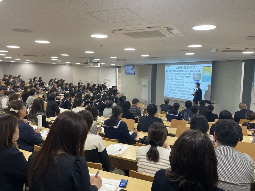 身近な水について、多様なデータを用いながら、常識が変わるような興味深いお話を聞くことができました。日本で当たり前のように持っている、水道の蛇口をひねると飲み水を得ることができるという価値観は、世界では大変少数派であることを始め、この先の自然環境や世界情勢の変化によって、われわれの「当たり前」は変化していく可能性があるというお話を聞くことができました。文系理系を選択する際に考えるべきことや、これからの社会を生きていく上でどのように物事を捉えていくのかなど、示唆に富むお話を生徒たちが顔を上げて受け止めていたことが印象的でした。