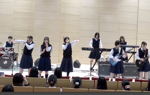 1・2年生あわせて40人以上の部員が、ボーカル・ギター・ベース・キーボード・ドラムスで構成した5~6名ずつのバンドで、自分たちで曲を決めて曜日ごとに練習しています。年に数回の校内ライブで発表するほか、他校とのジョイントや、軽音楽系クラブの大会出場などもしています。お互いに 個性を尊重しつつも仲間を思いやり、常にけじめと感謝の気持ちを大切に活動しています。