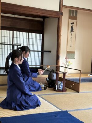 亭主となる高校3年生は、昨年まで授業や京都文化論講座で茶道を学んできました。