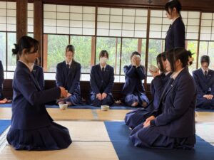 高校3年生は、この茶会を通して、日々の鍛錬がいづれどのように花開き、実を結んでいくのか・・・そういった感覚を一つの体験として感じてくれたのではないかと思います。日々の学びは当たり前のことのように過ぎていってしまうものですが、その鍛錬を惜しまず丁寧に積むことで、学びが自分自身の中に着実に実っていきます。